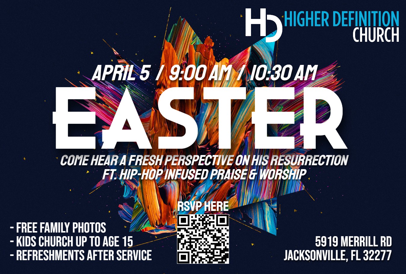 Whether you're coming solo or bringing friends/family, let me invite you to join us on Sunday, April 5th, 9:00 am or 10:30 am @ Higher Definition Church!